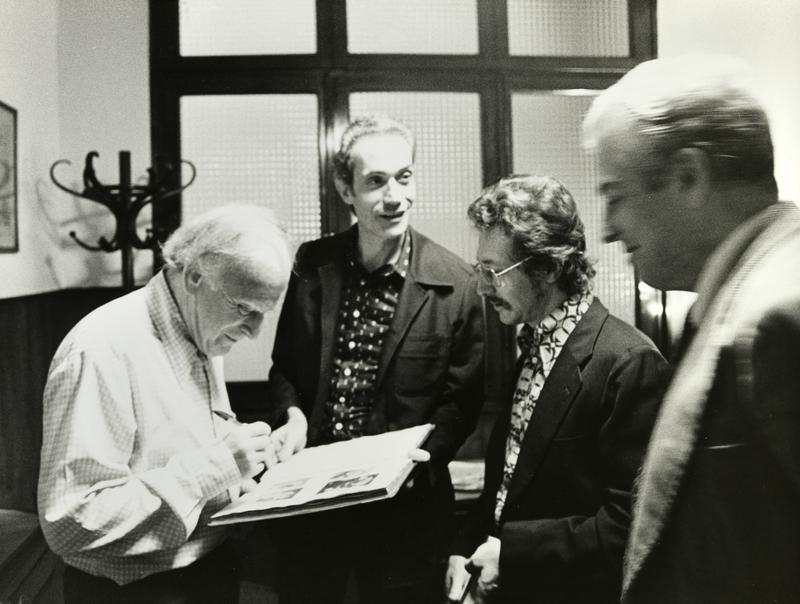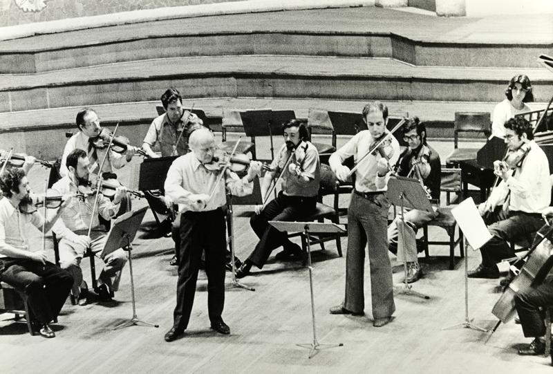 - 175.1-175-10. Els músics, Yehudi Menuhin i Antoni Sàbat parlant en diversos moments. 175.11. Moment de l'assaig amb l'orquestra i Yehudi Menuhin i Gonçal Comellas tocant el violí. El concert es va celebrar el dia 21 d'octubre de 1977 al Palau de la Música Catalana en el marc del Festival Internacional de Música de Barcelona.