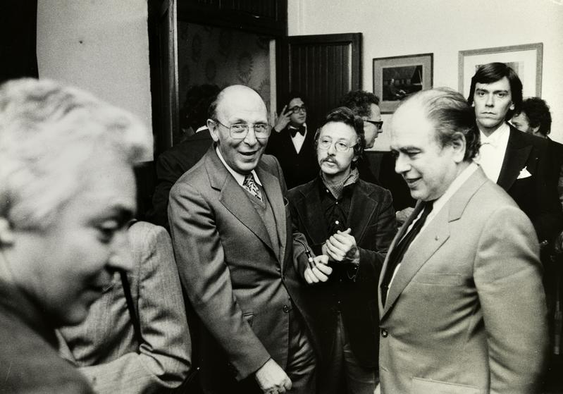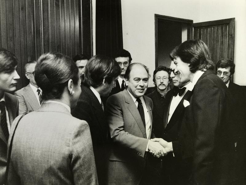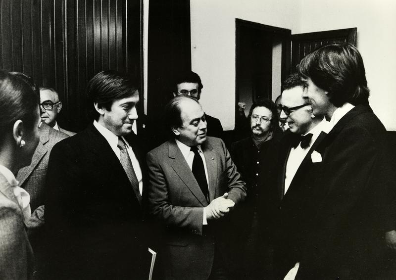 - 199.1 Jordi Pujol saludant Antoni Sàbat. 199.2 Jordi Pujol parlant amb Joan Triadú. A darrera Antoni Sàbat i Josep Maria Flotats. 199.3 Jordi Pujol, Marta Ferrussola, Narcís Bonet i Josep Maria Flotats. 199.4 Jordi Pujol, Max Cahner, Narcís Bonet i Josep Maria Flotats. 199.5 Jordi Pujol saludant a Josep Maria Flotats, amb Max Cahner, Antoni Sàbat i Narcís Bonent, entre d'altres.
