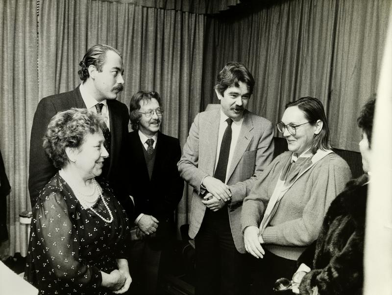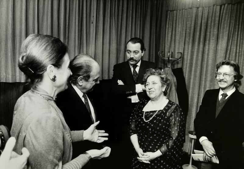 1 i 2. Alícia de Larrocha parlant amb, entre d'altres, l'alcalde de Barcelona, Pasqual Maragall. 3. Alícia de Larrocha parlant amb, entre d'altres, el president de la Generalitat de Catalunya, Jordi Pujol.