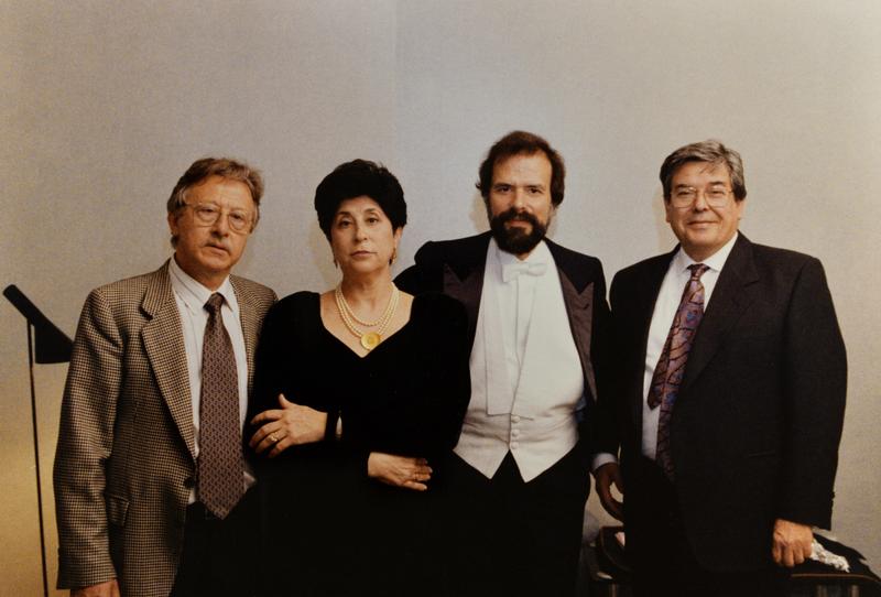 [Antoni Sàbat amb la soprano Carmen Bustamante i el pianista Josep Colom el dia del concert celebrat al Palau de la Música Catalana, en el marc de la vuitena temporada del cicle de concerts d’Euroconcert]