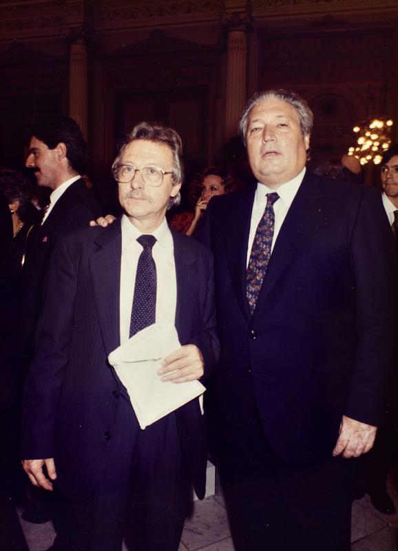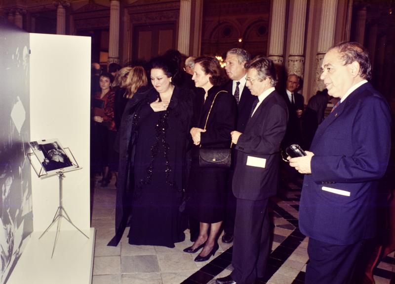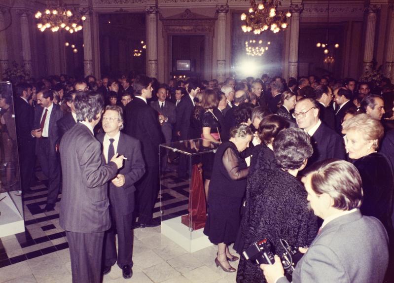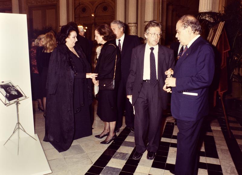 - 299.1 Jordi Pujol i altres assistent, Antoni Sàbat entre ells, pel passadís del Liceu. 299.2 Antoni Sàbat i Macià Alavedra, a la sala dels miralls del Liceu. 299.3-299.4 Antoni Sàbat parlant amb Jordi Pujol, i Montserrat Caballé parlant amb Marta Ferrussola, a la Sala dels miralls del Liceu. 299.5 Públic assistent a la representació, a la Sala dels miralls del Liceu.