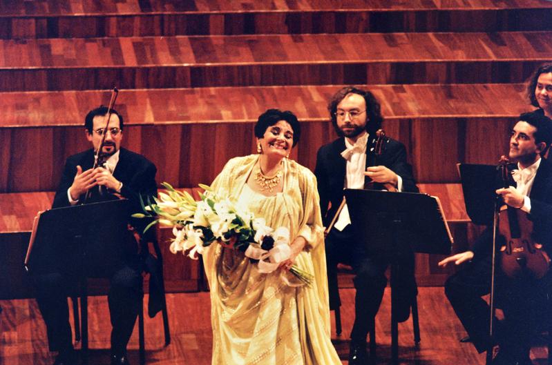 - 316.1-316.2 Moments de l'actuació de Victòria dels Àngels. 316.3 Victòria dels Àngels saludant al públic. 316.4 Retrat de pla mitjà de Victòria dels Àngels, després del concert. 316.5 Victòria dels Àngels i Antoni Sàbat després del concert.