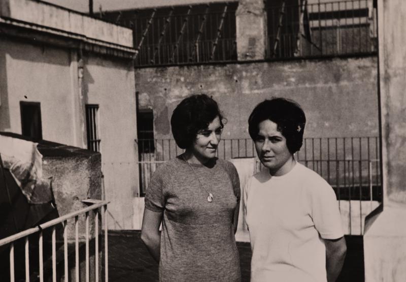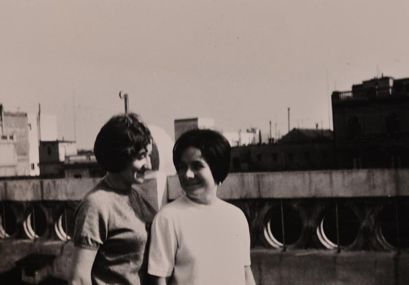 [Liliana Maffiotte i Leonora Milà al terrat del domicili de Maria Canals]
