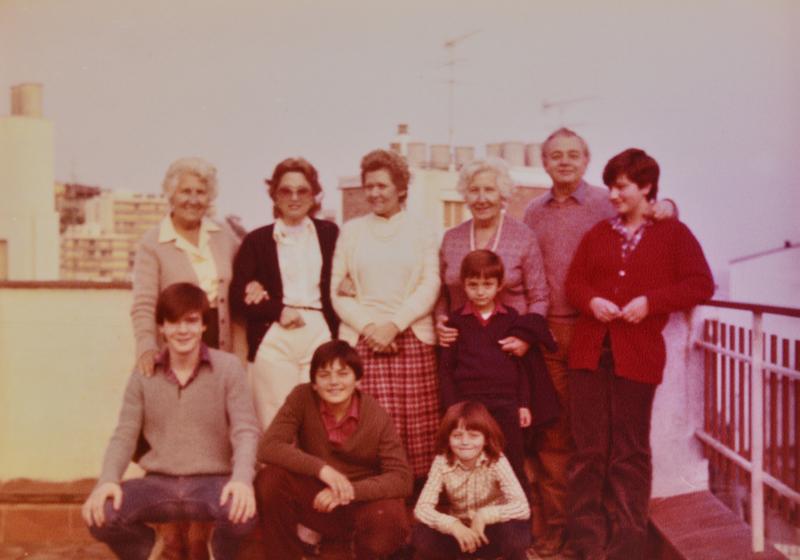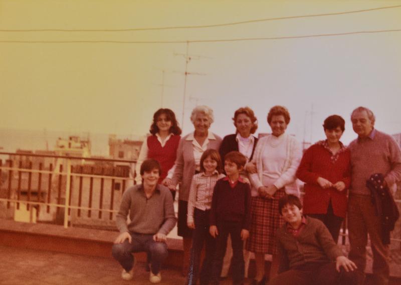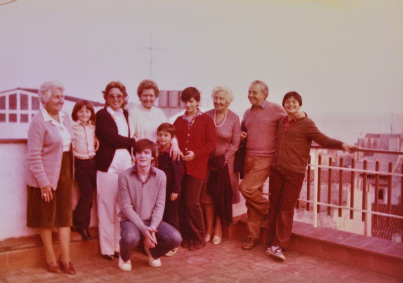 [Retrats de grup de Maria Canals amb un grup de familiars i amics, en un terrat]