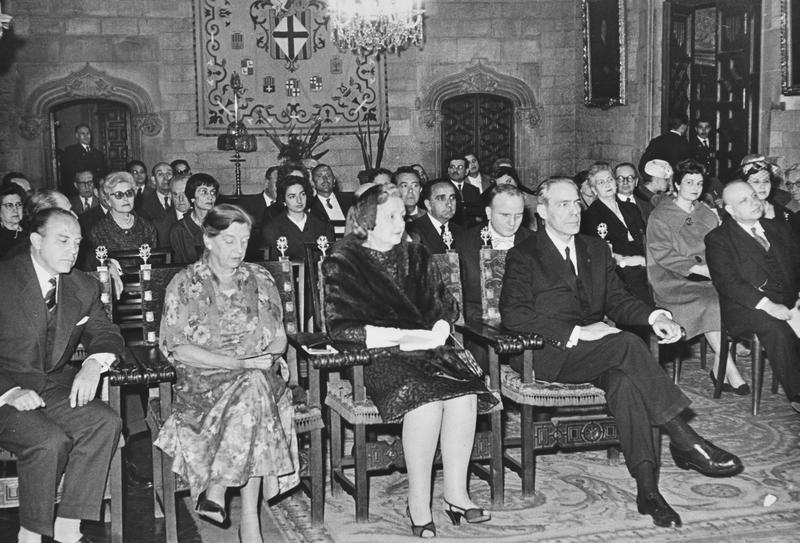 - En R0377.01: Maria Canals, al piano. En R0377.02: H. Kriegel, delegat de Cultura i Prensa del consulat Alemany, Helène Rieder i Joaquim Buxó. En R0377.03: el president de la Diputació de Barcelona, Joaquim Buxó, obsequia amb un ram de flors a Maria Canals.