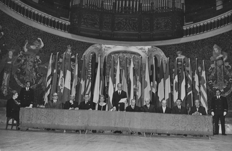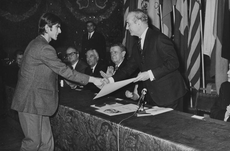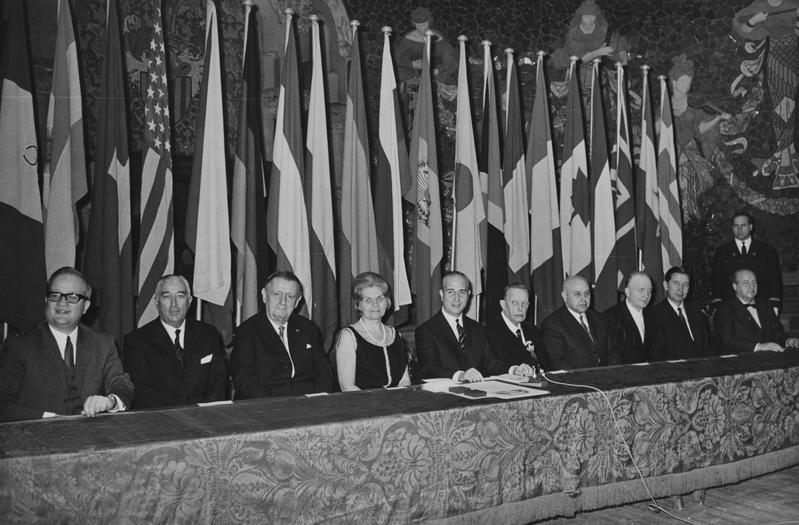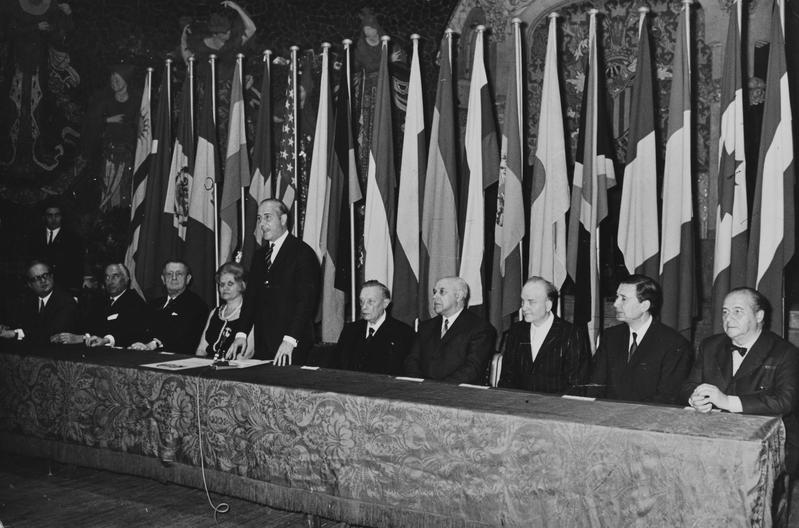 - En R0426.04: Dret, el president de la Diputació de Barcelona Josep Maria Müller i d'Abadal. Aseguts a la taula, d'esquerra a dreta, Jürgen Meyer-Jösten, Federico Mitjans, Georges Auric, Maria Canals, Henri Gagnebin, Joan Pich Santasusana, Alberto Mozzati, Akeo Watanabe i Rossend Llates. En R0426.07:Josep Maria Müller entrega el seu guardó a un dels guanyadors, a la seva dreta, Georges Auric, Federico Mitjans i Jürgen Meyer-Jösten.