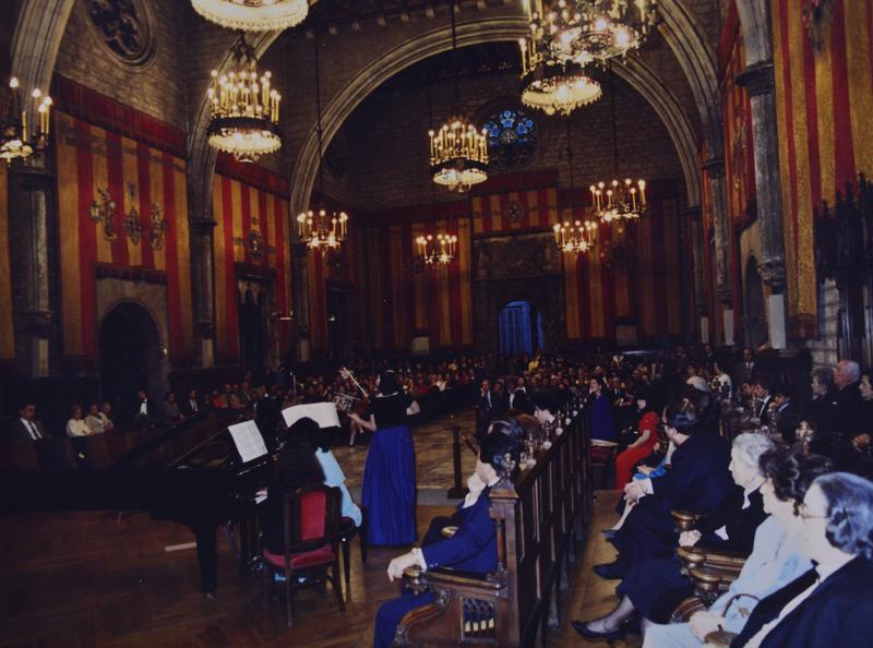 - En R0559.01: la tinent d'alcalde Maria Aurèlia Capmany; asseguts: no id, Joaquim Nin Culmell, Maria Canals, Joan Pich Santasusana, Tatsuji Hayashi, no id. En R0559.02: Actuació de Senoko Numata, al violí i Akemi Tadenuma, al piano.